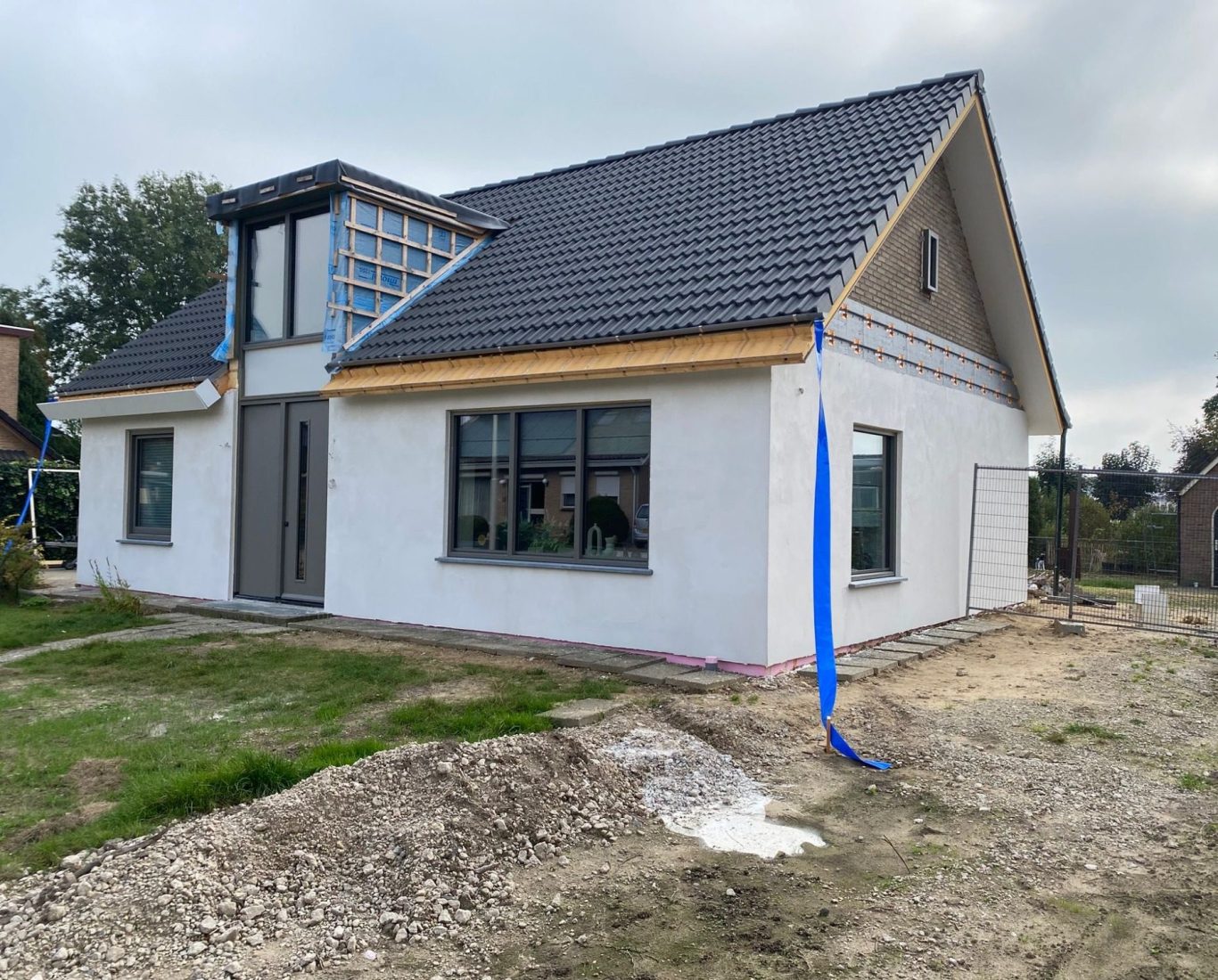 Het dak werd verhoogd om extra ruimte en licht te creëren, en aan de achterzijde is een royale aanbouw gerealiseerd. Hierdoor is de woning van een bescheiden, verouderd huis getransformeerd tot een moderne, comfortabele gezinswoning met aanzienlijk meer leefruimte.